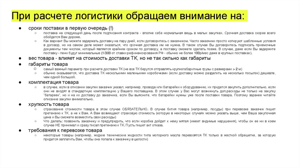 При расчете логистики обращаем внимание на:сроки поставки в первую очередь (!)