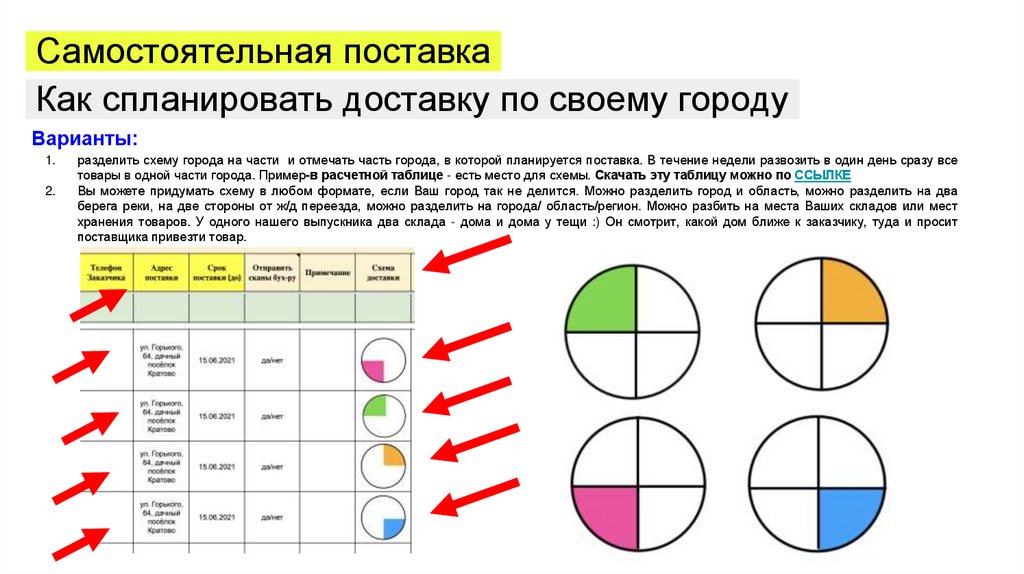 товары в одной части города. Пример-в расчетной таблице - есть место для схемы. Скачать эту таблицу можно по ССЫЛКЕ