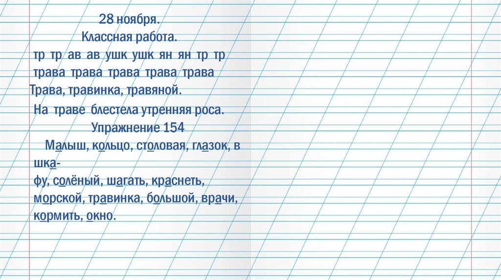 7. Домашнее задание. Запиши любые три строки, вставляя пропущенные буквы. Выдели корень, поставь ударение.