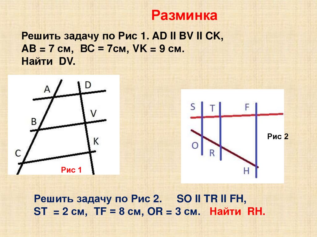 РазминкаРешить задачу по Рис 1. AD II BV II CK,