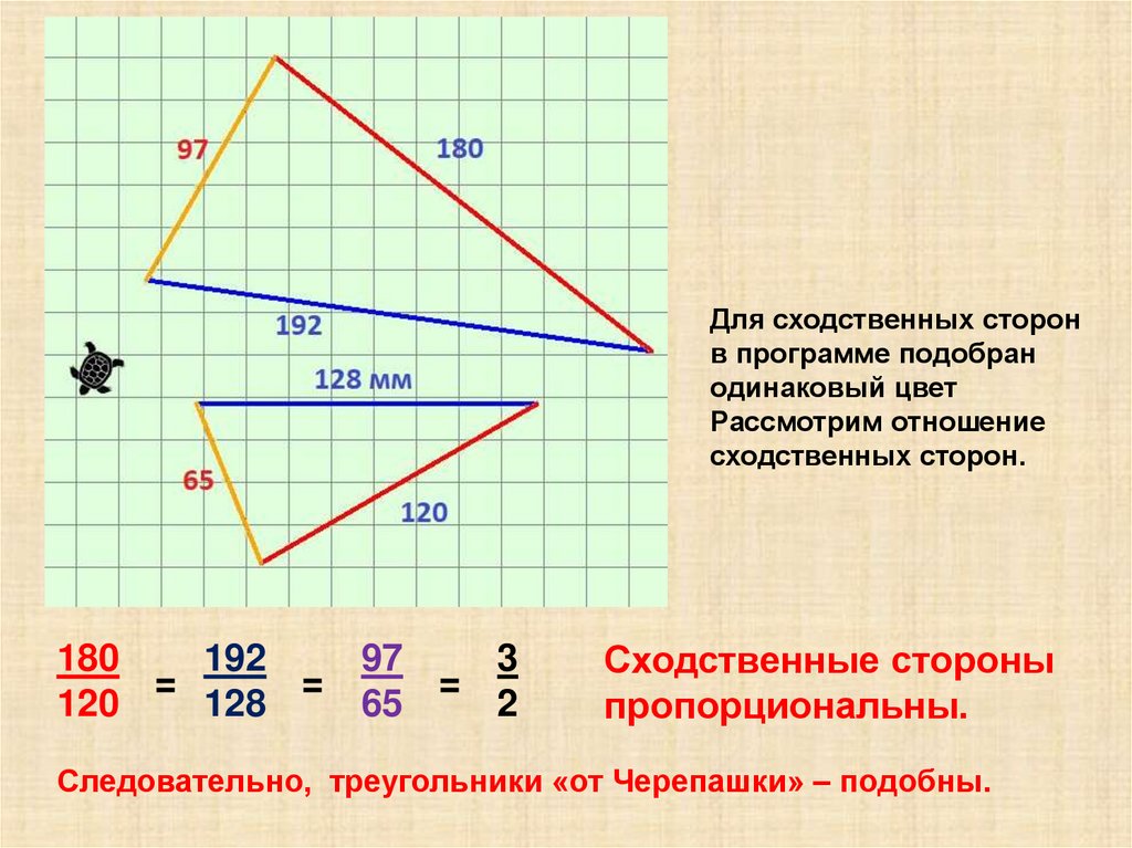 Следовательно, треугольники «от Черепашки» – подобны.