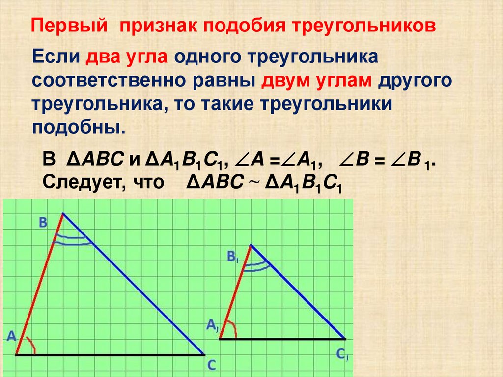 Первый признак подобия треугольниковЕсли два угла одного треугольника