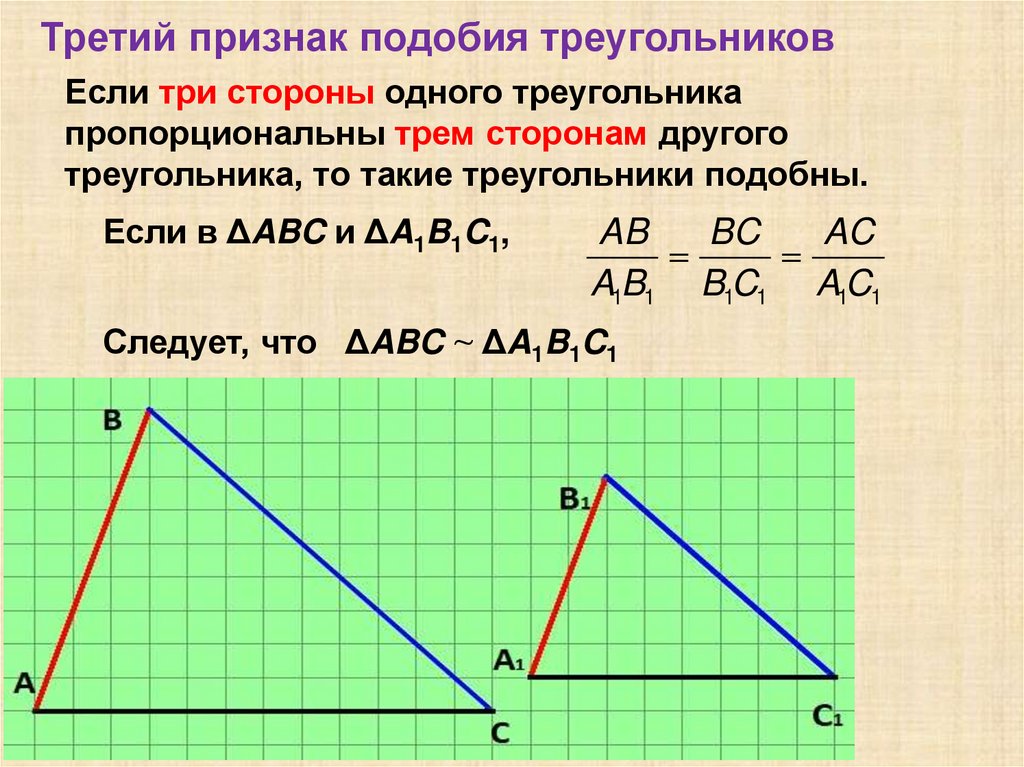 Третий признак подобия треугольниковЕсли три стороны одного треугольника