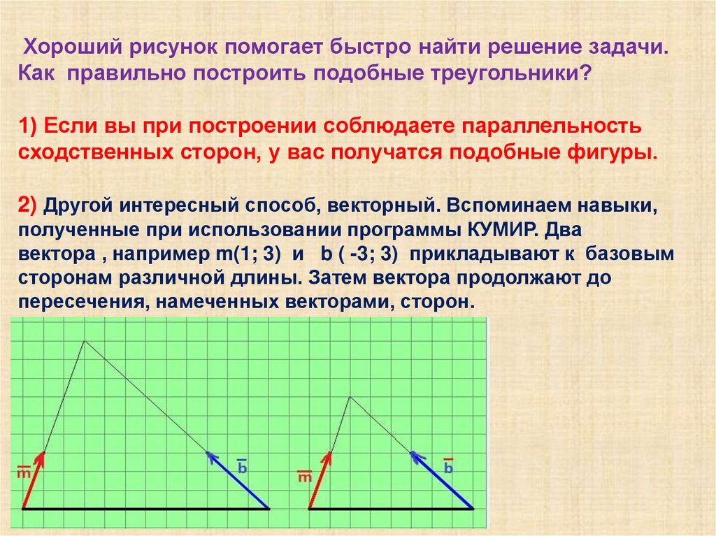 Хороший рисунок помогает быстро найти решение задачи.Как правильно построить подобные треугольники?