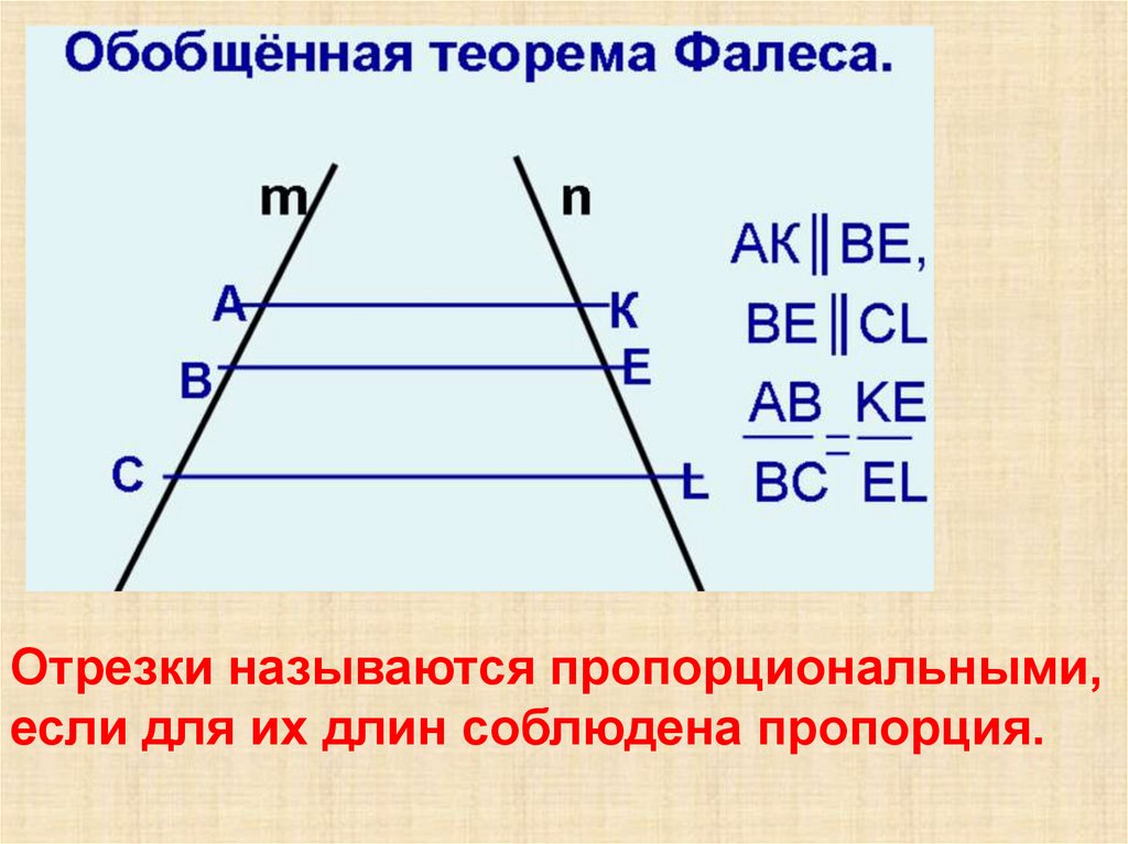 Отрезки называются пропорциональными,если для их длин соблюдена пропорция.