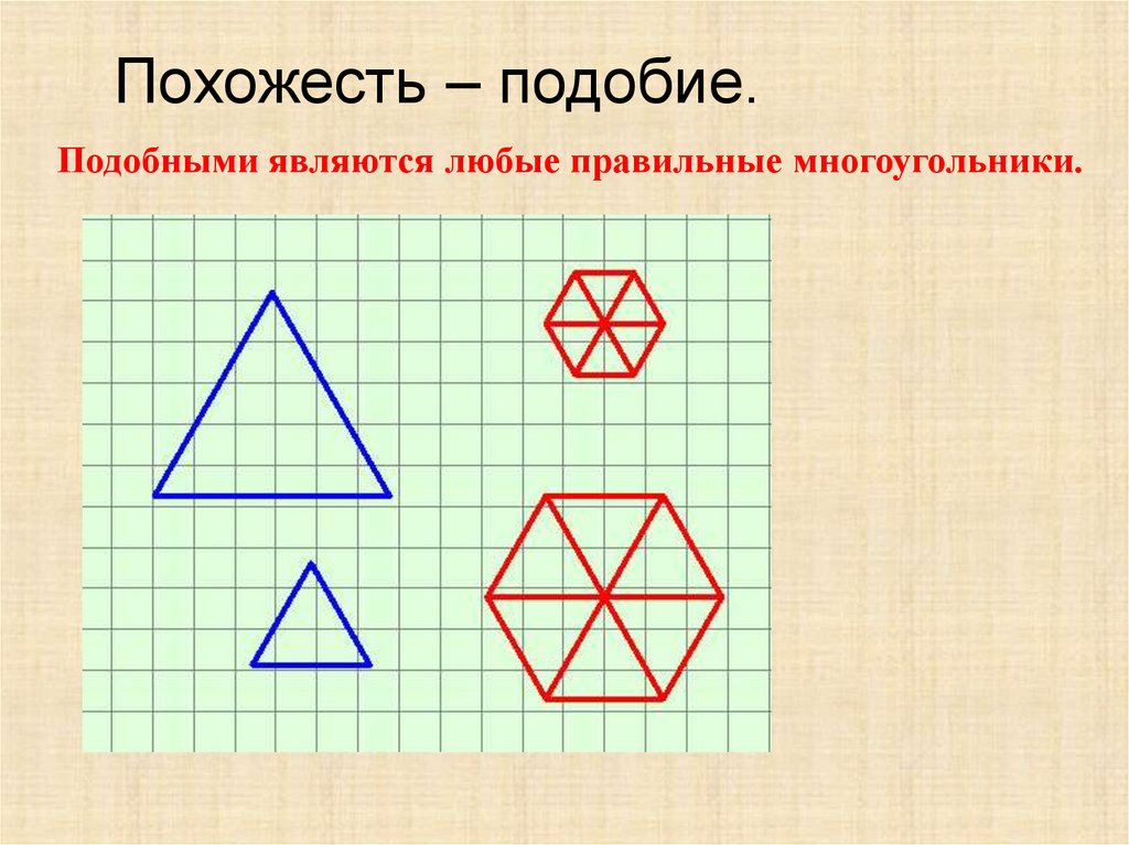 Похожесть – подобие.Подобными являются любые правильные многоугольники.