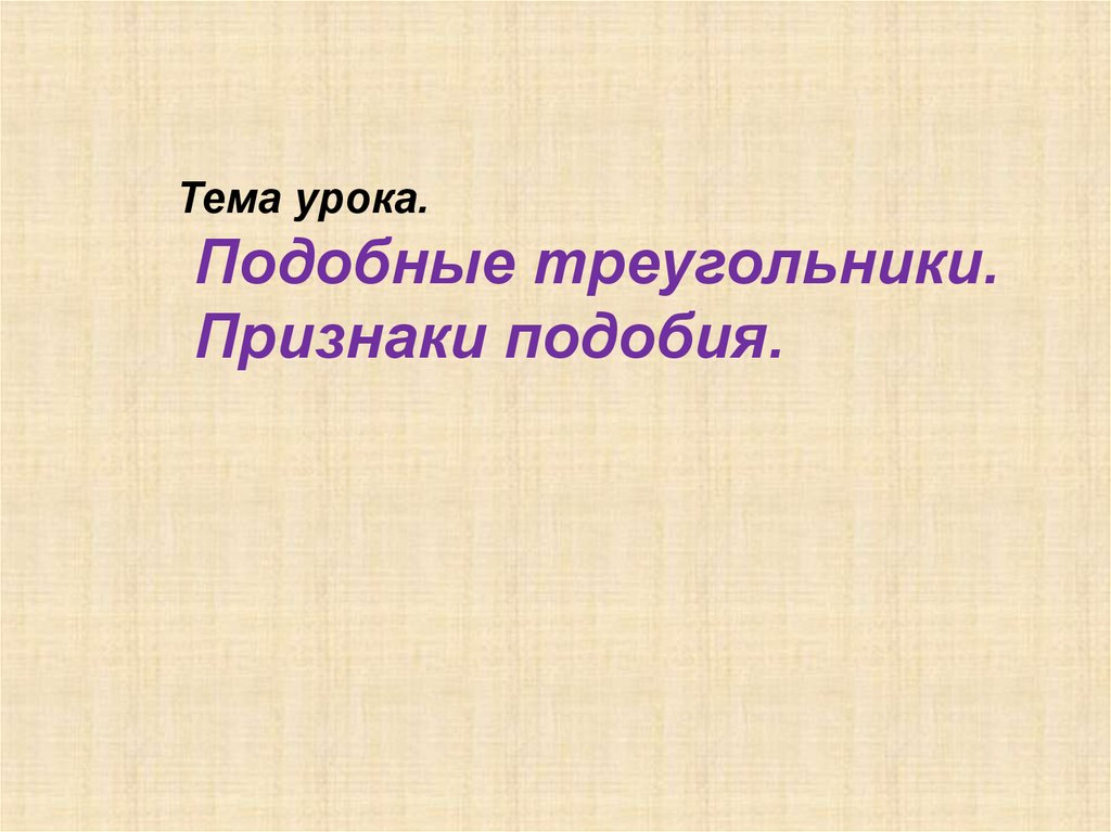 Тема урока.Подобные треугольники.