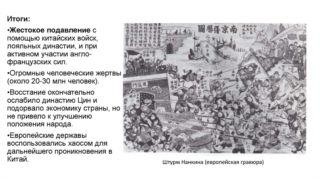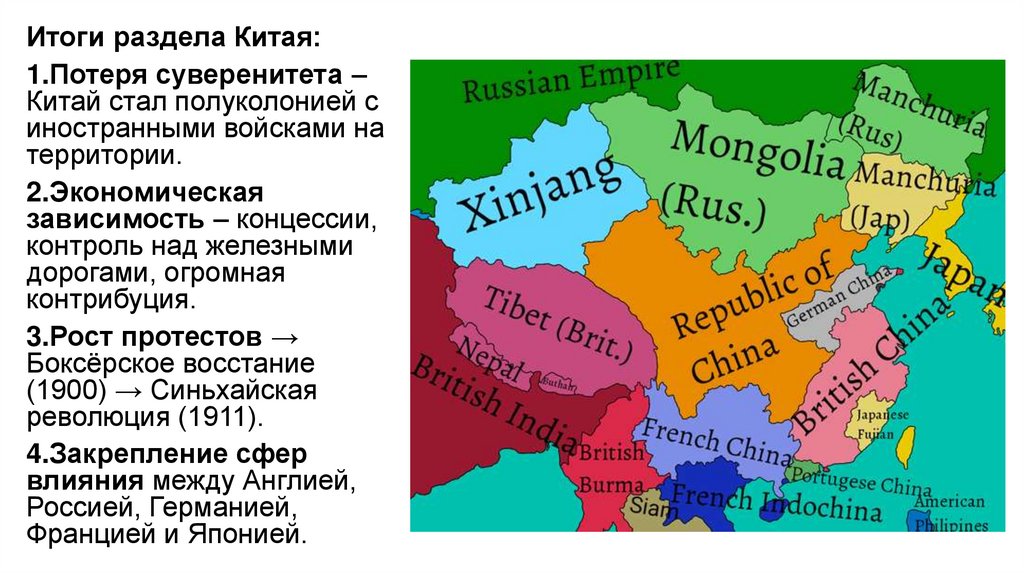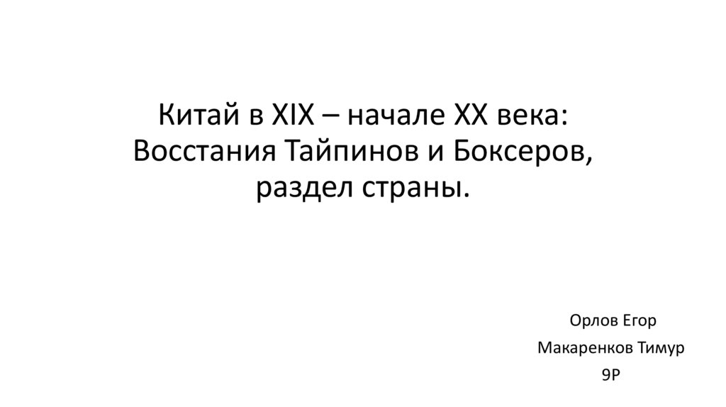 1. Китай в XIX – начале XX века: Восстания Тайпинов и Боксеров, раздел страны.