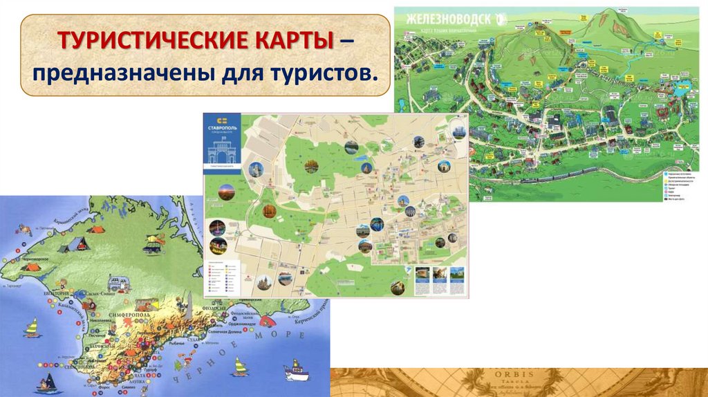 ТУРИСТИЧЕСКИЕ КАРТЫ –предназначены для туристов.