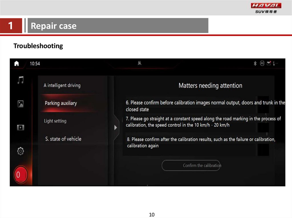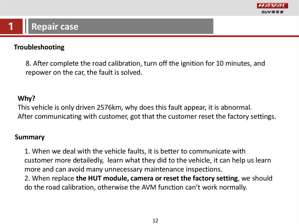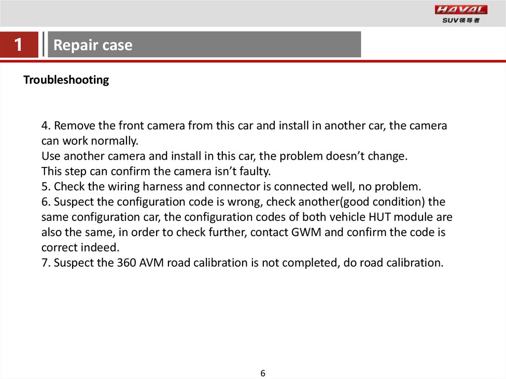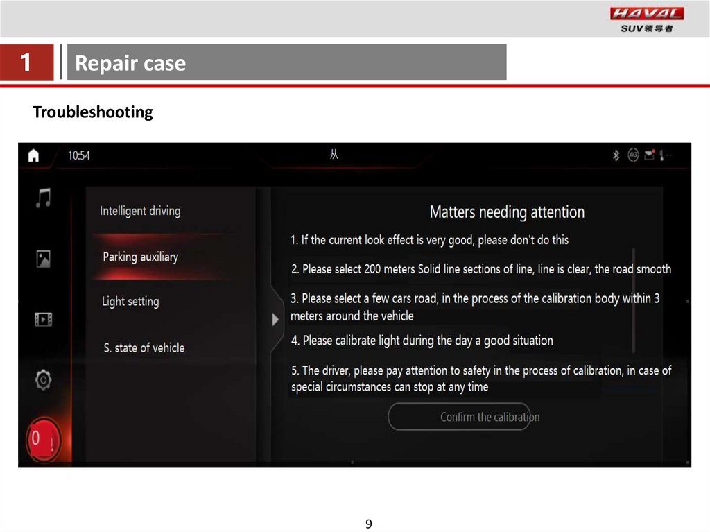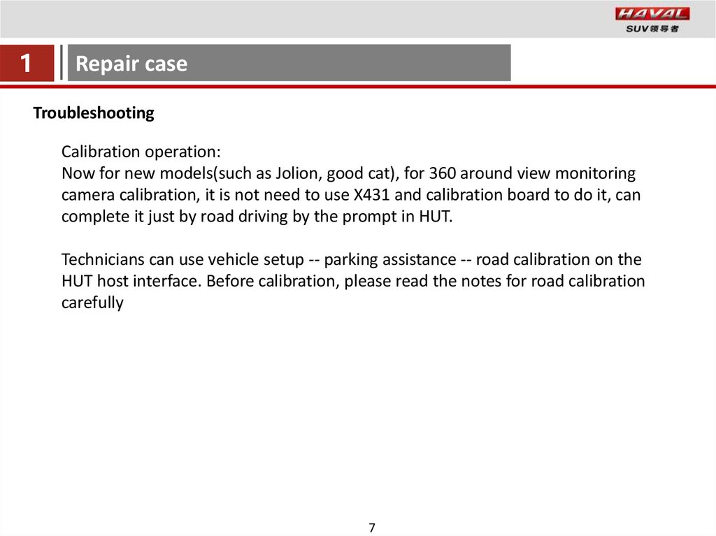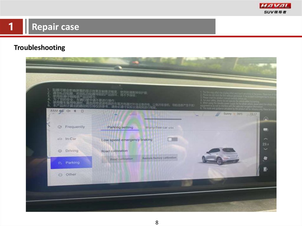 7. Suspect the 360 AVM road calibration is not completed, do road calibration.