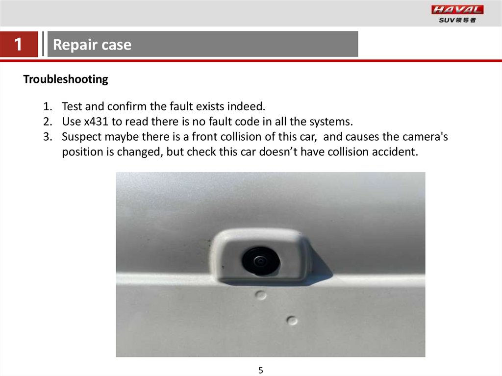3. Suspect maybe there is a front collision of this car, and causes the camera's