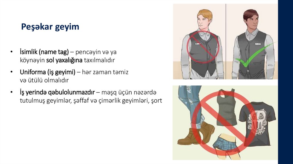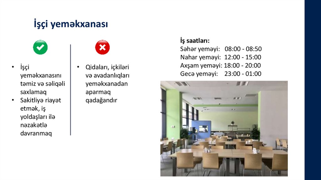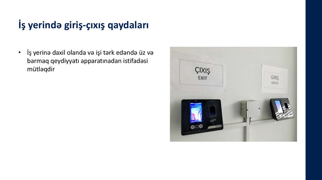 İş yerində giriş-çıxış qaydaları• İş yerinə daxil olanda və işi tərk edəndə üz və