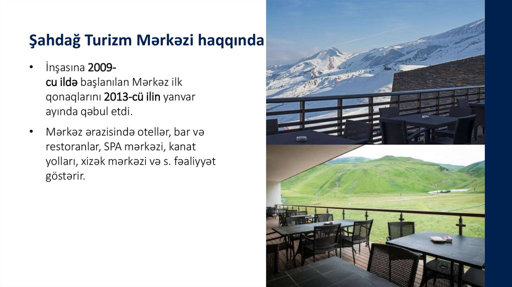 Şahdağ Turizm Mərkəzi haqqında• İnşasına 2009cu ildə başlanılan Mərkəz ilk
