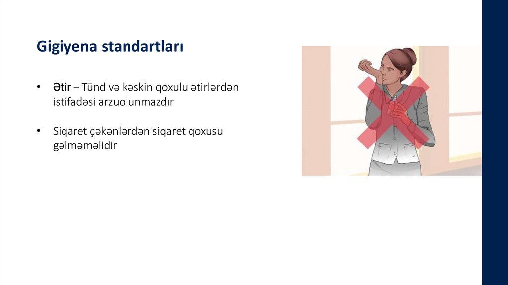 Gigiyena standartları• Ətir – Tünd və kəskin qoxulu ətirlərdən