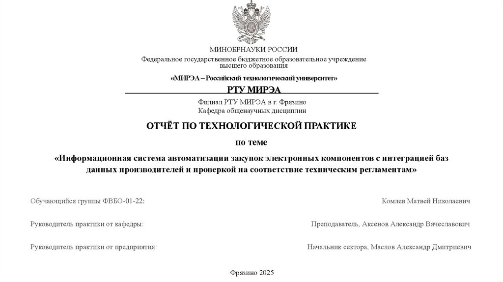 «Информационная система автоматизации закупок электронных компонентов с интеграцией баз