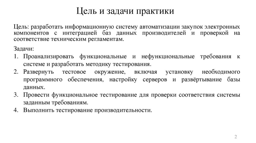 Цель и задачи практикиЦель: разработать информационную систему автоматизации закупок электронных