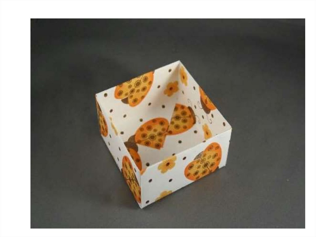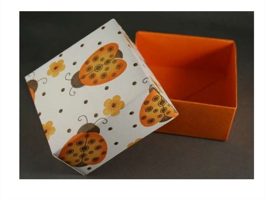 2. Что нужно: Бумага. Ножницы. Все для украшения. Что делать: Начнём с крышечки. Возьмите квадратный листок. Размер бумаги зависит