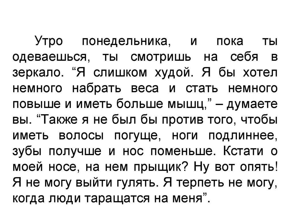 Утро понедельника, и пока тыодеваешься, ты смотришь на себя в