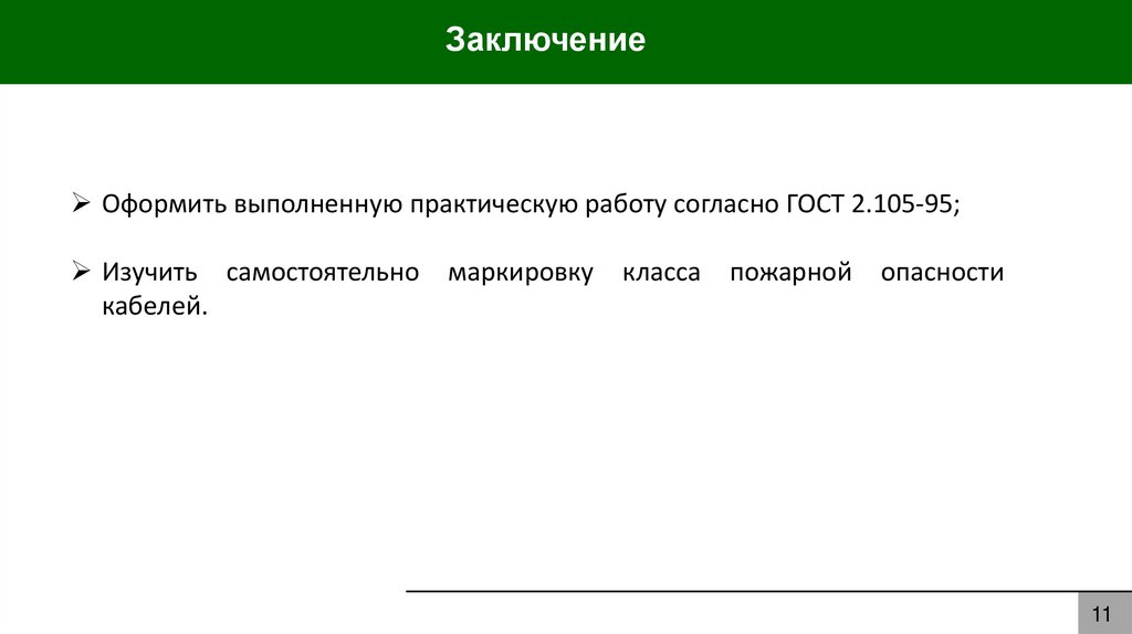 ЗаключениеОформить выполненную практическую работу согласно ГОСТ 2.105-95;