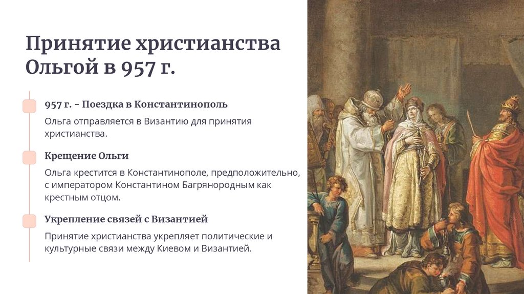 Крещение Ольги способствовало росту числа христиан на Руси.