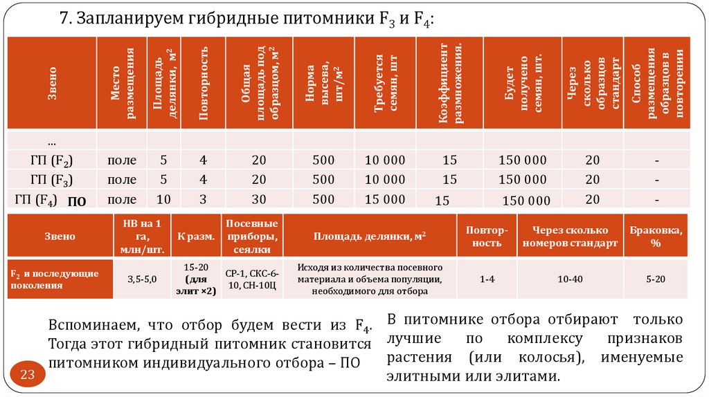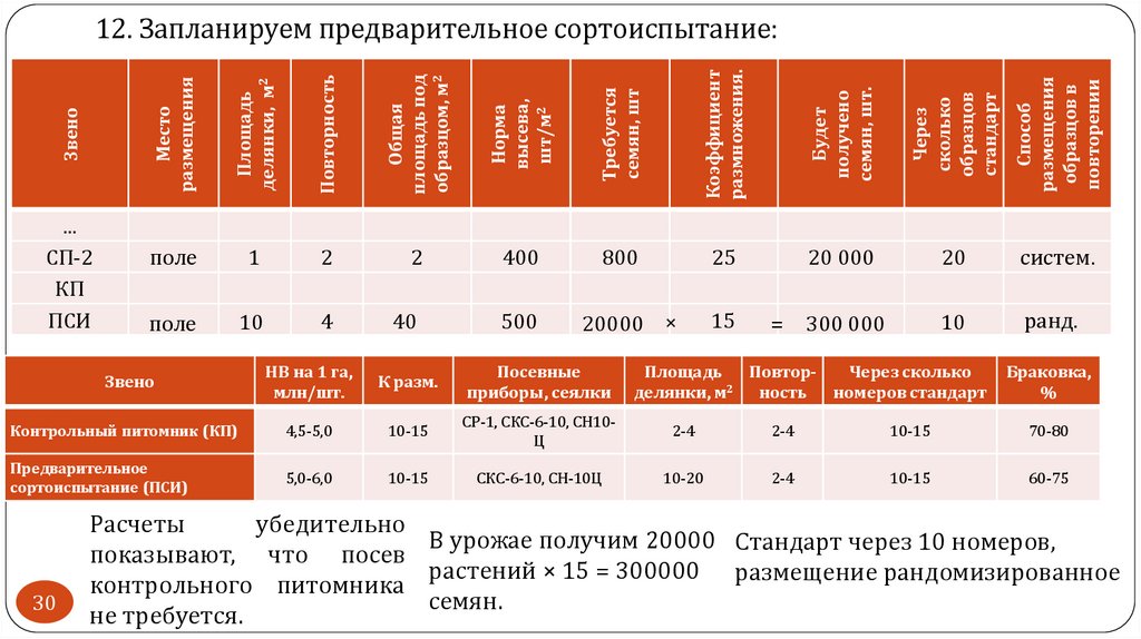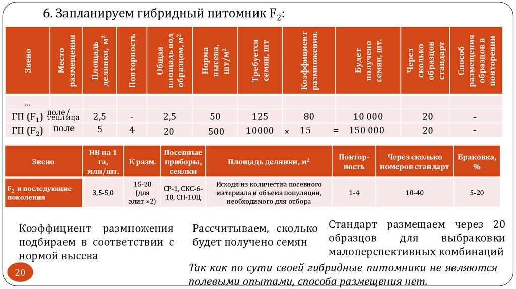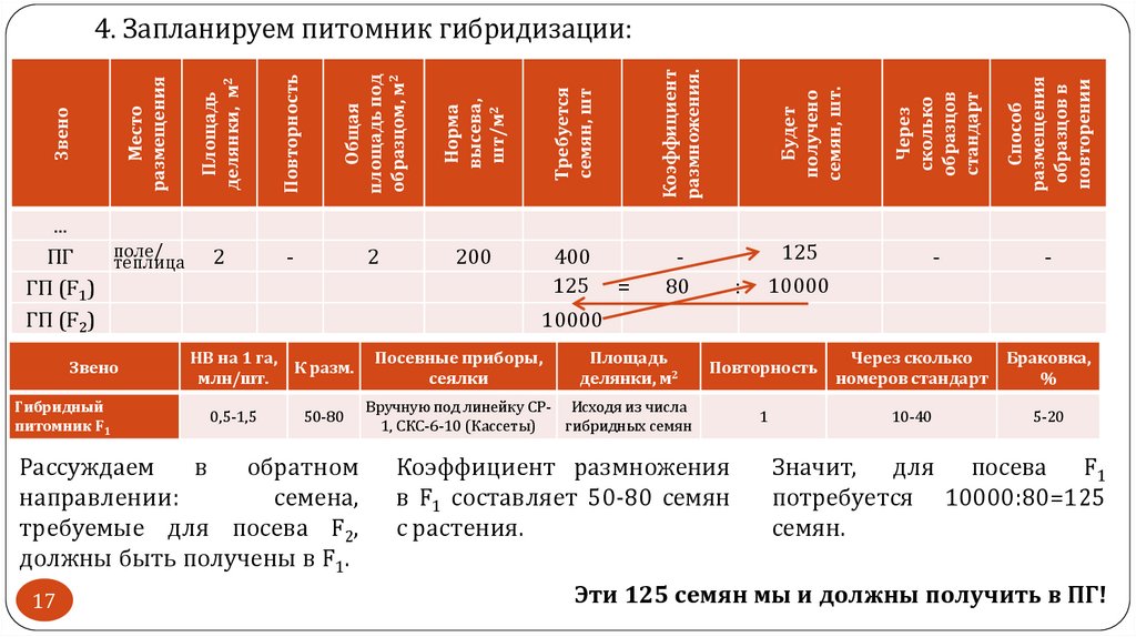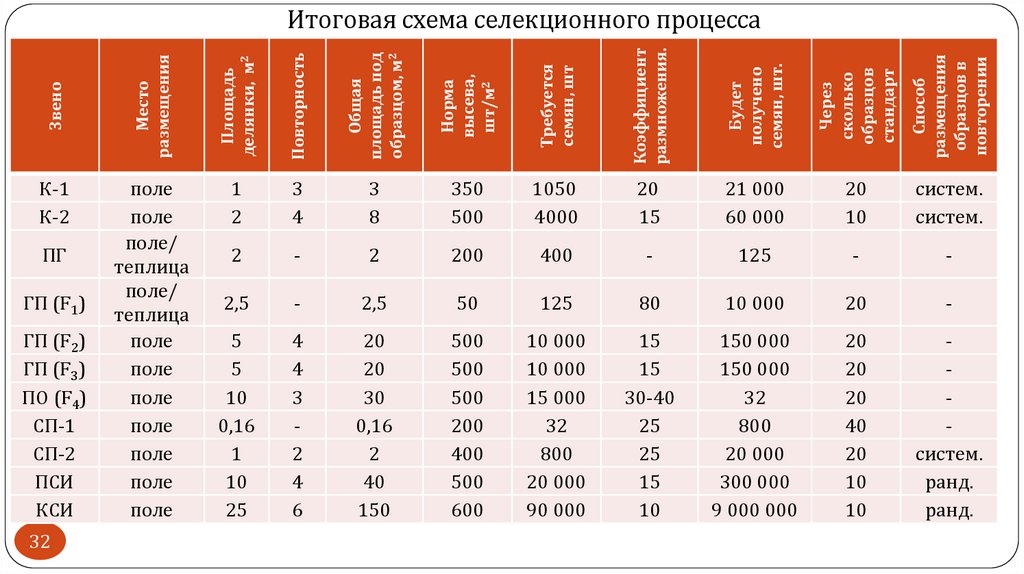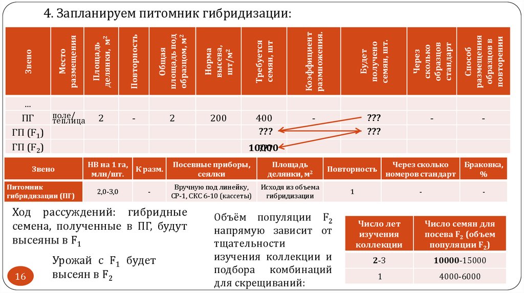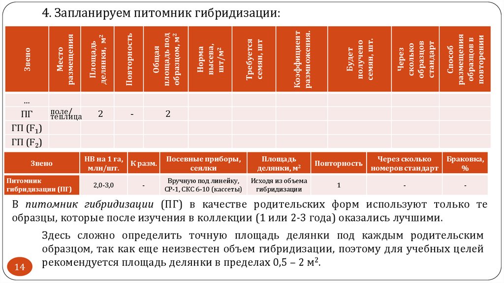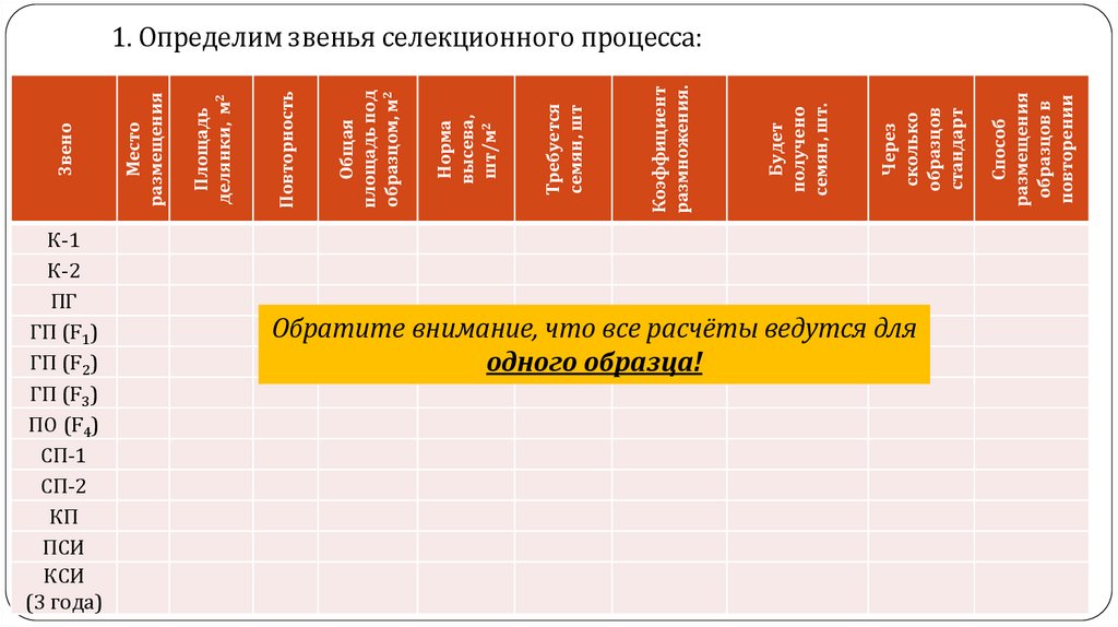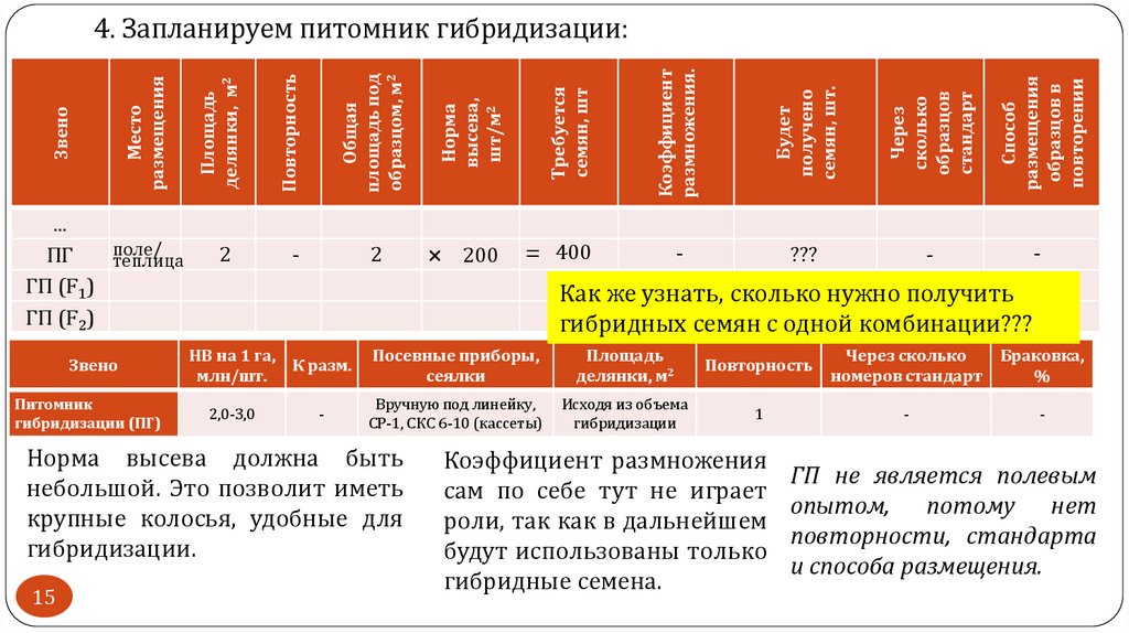 Определение числа звеньев в схеме селекционного процесса, места реализациикаждого звена (поле, теплица) и такие элементы селекционного опыта (а каждое звено, за