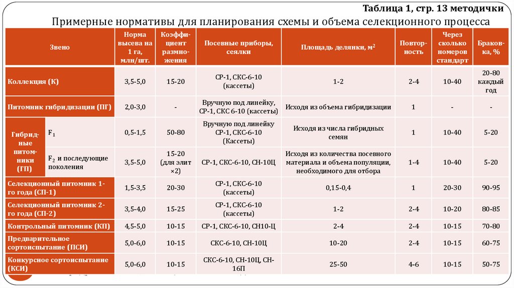 1. Планирование селекционного процесса 1. Схема селекционного процесса