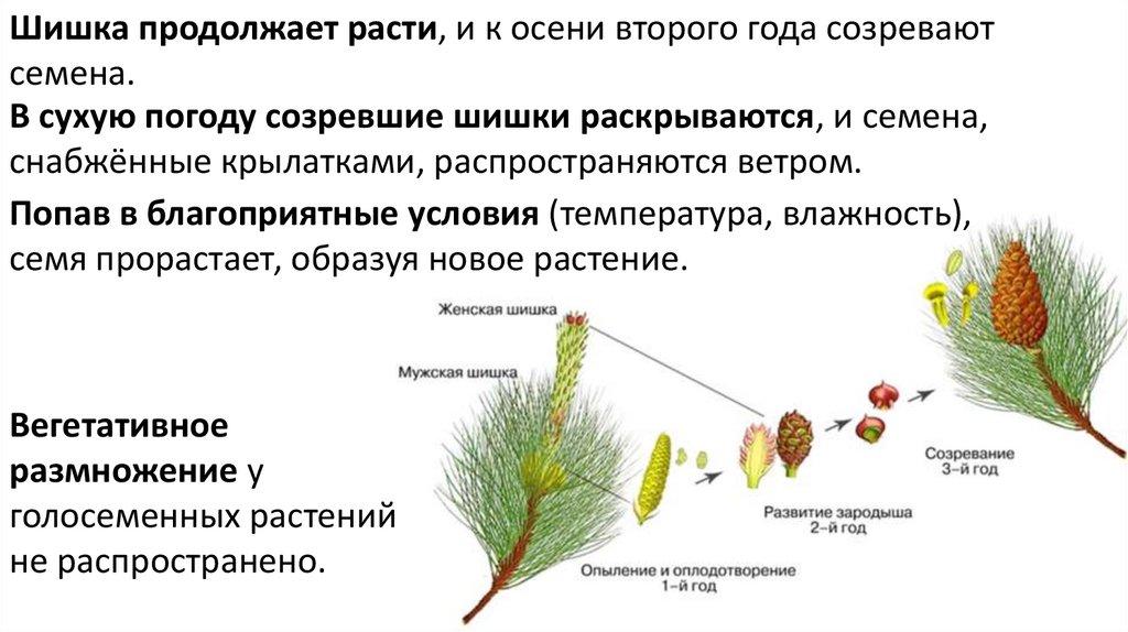 Шишка продолжает расти, и к осени второго года созреваютсемена.