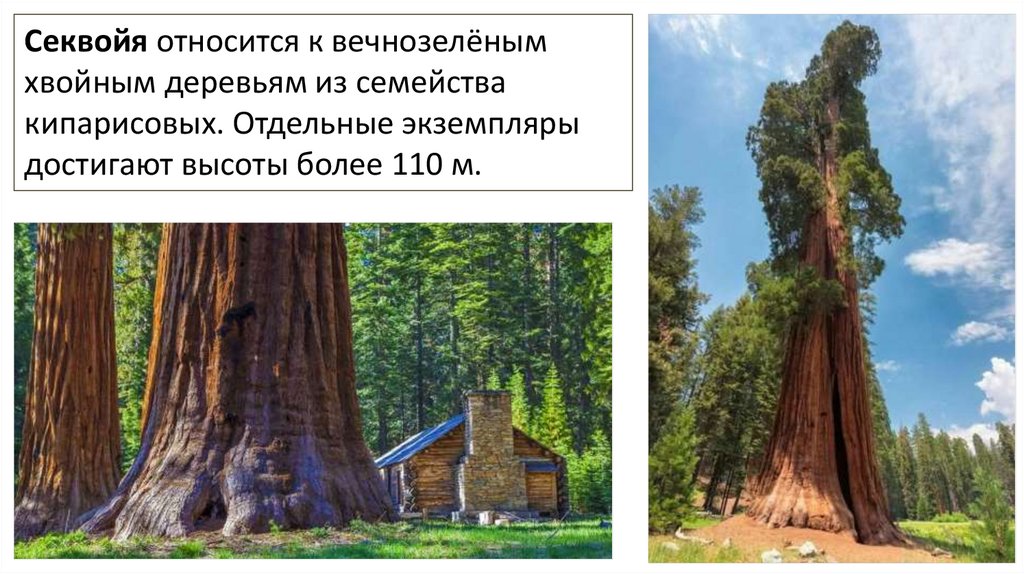 Секвойя относится к вечнозелёнымхвойным деревьям из семейства