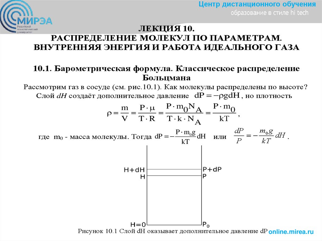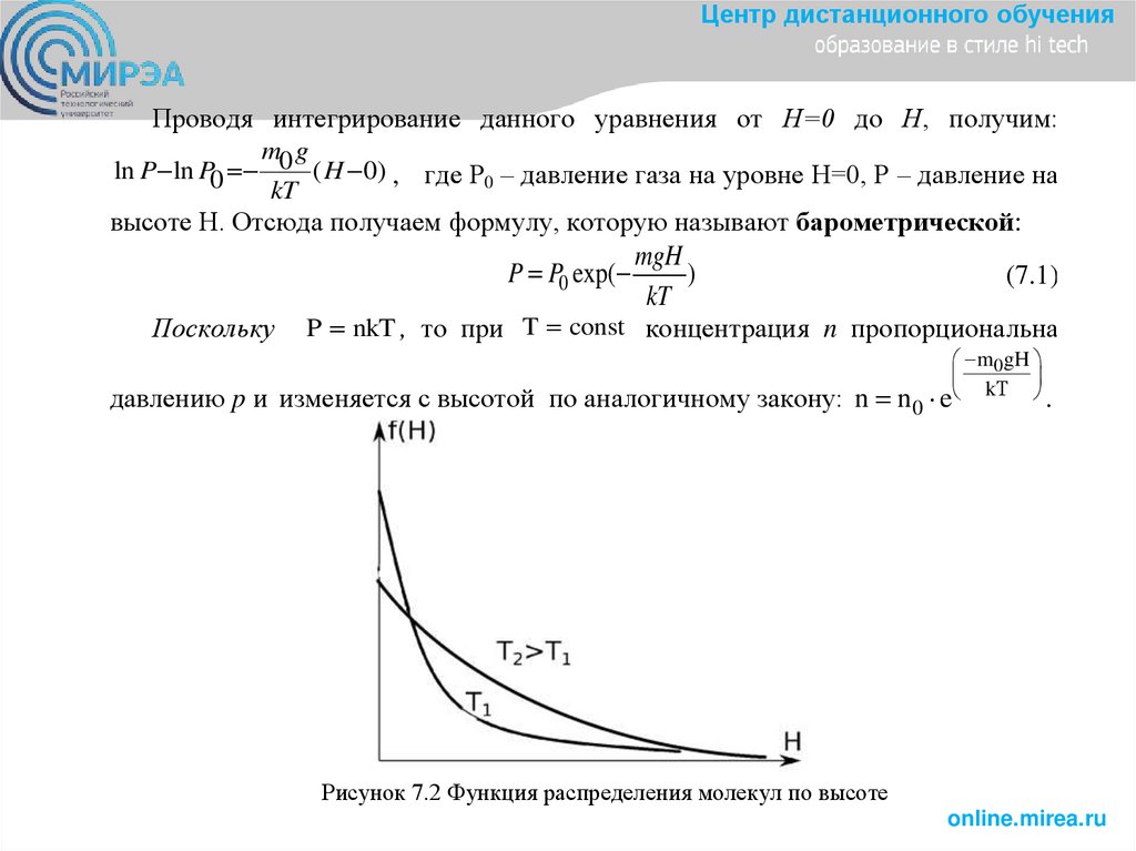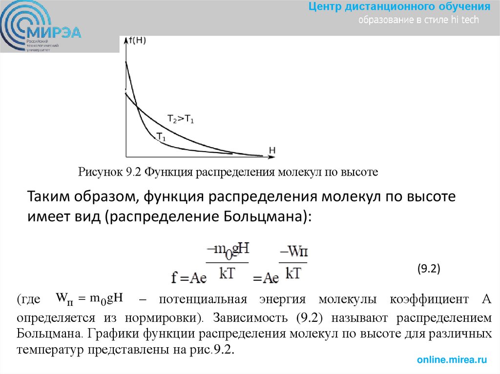 Центр дистанционного обученияРисунок 9.2 Функция распределения молекул по высоте
