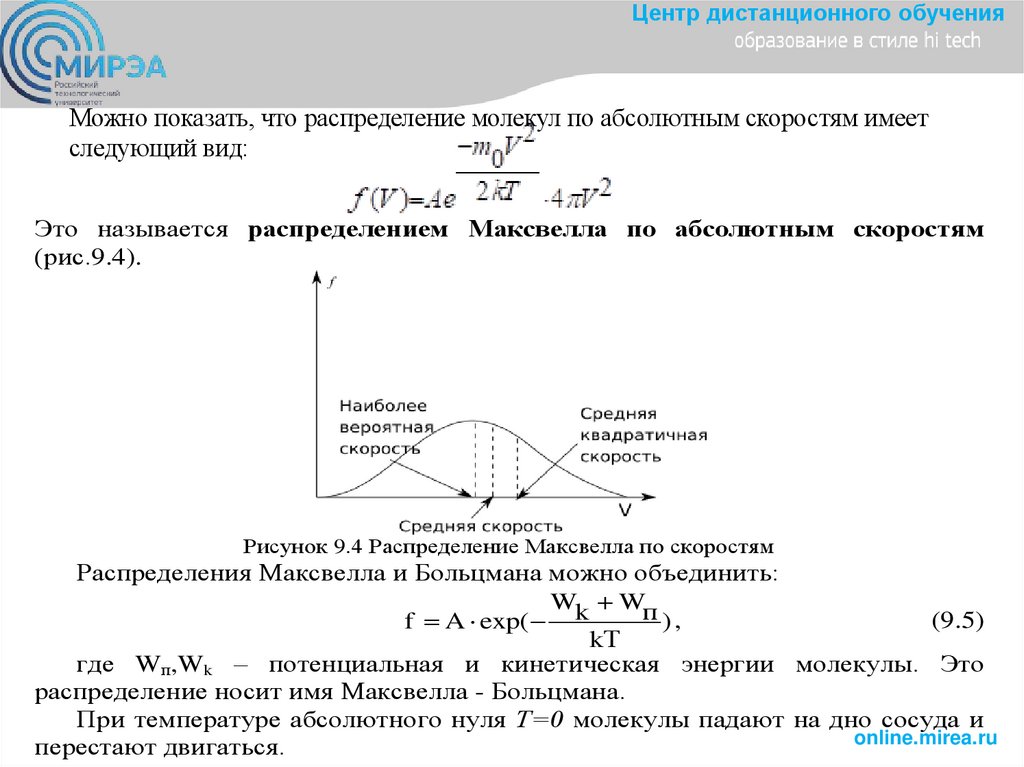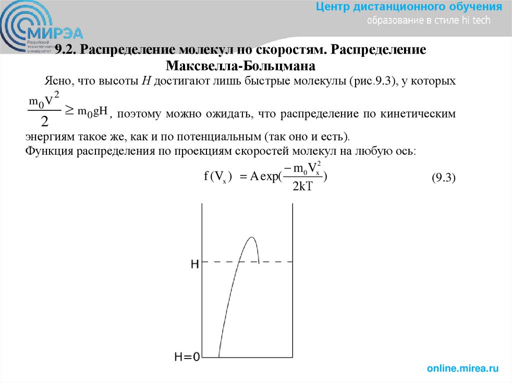 Центр дистанционного обучения9.2. Распределение молекул по скоростям. Распределение