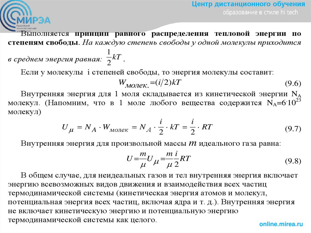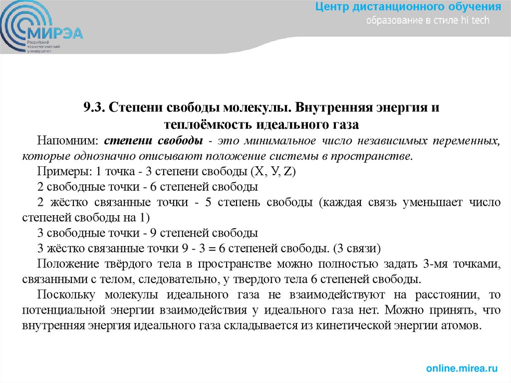 Центр дистанционного обучения9.3. Степени свободы молекулы. Внутренняя энергия и