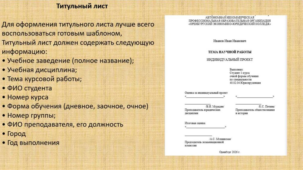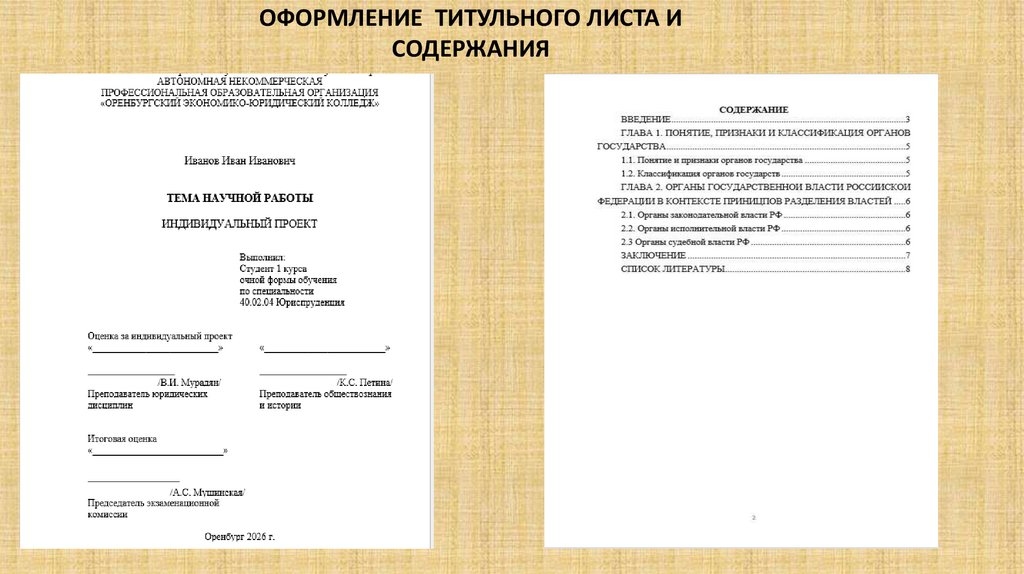 ОФОРМЛЕНИЕ ТИТУЛЬНОГО ЛИСТА ИСОДЕРЖАНИЯ
