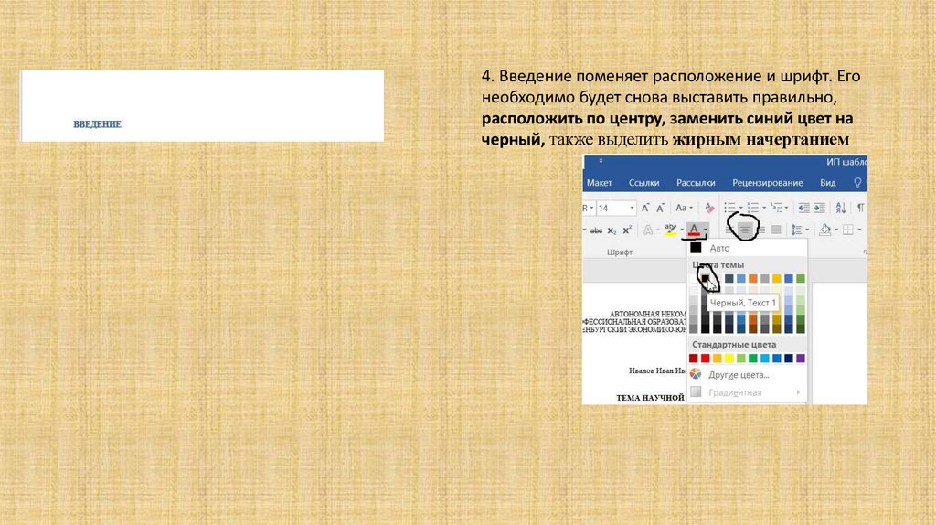 4. Введение поменяет расположение и шрифт. Егонеобходимо будет снова выставить правильно,