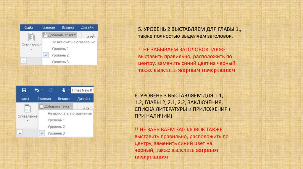 5. УРОВЕНЬ 2 ВЫСТАВЛЯЕМ ДЛЯ ГЛАВЫ 1.,также полностью выделяем заголовок.
