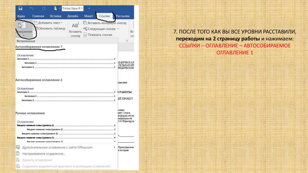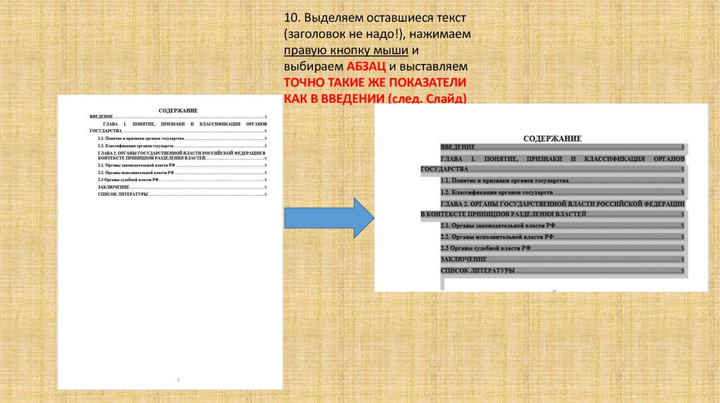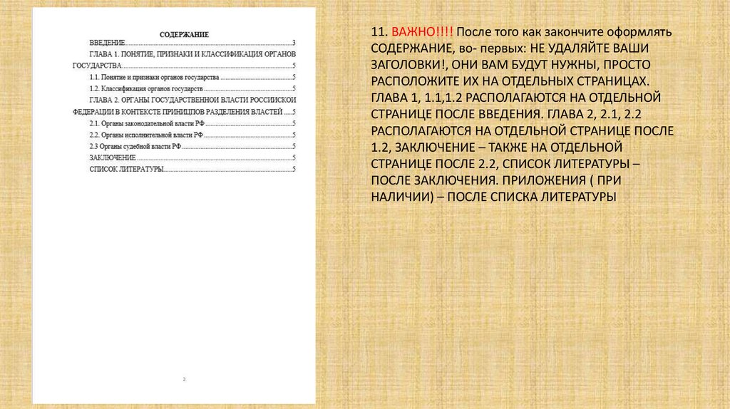 11. ВАЖНО!!!! После того как закончите оформлятьСОДЕРЖАНИЕ, во- первых: НЕ УДАЛЯЙТЕ ВАШИ