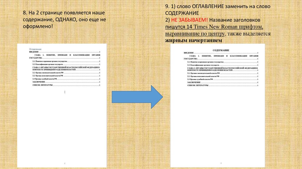 9. 1) слово ОГЛАВЛЕНИЕ заменить на слово