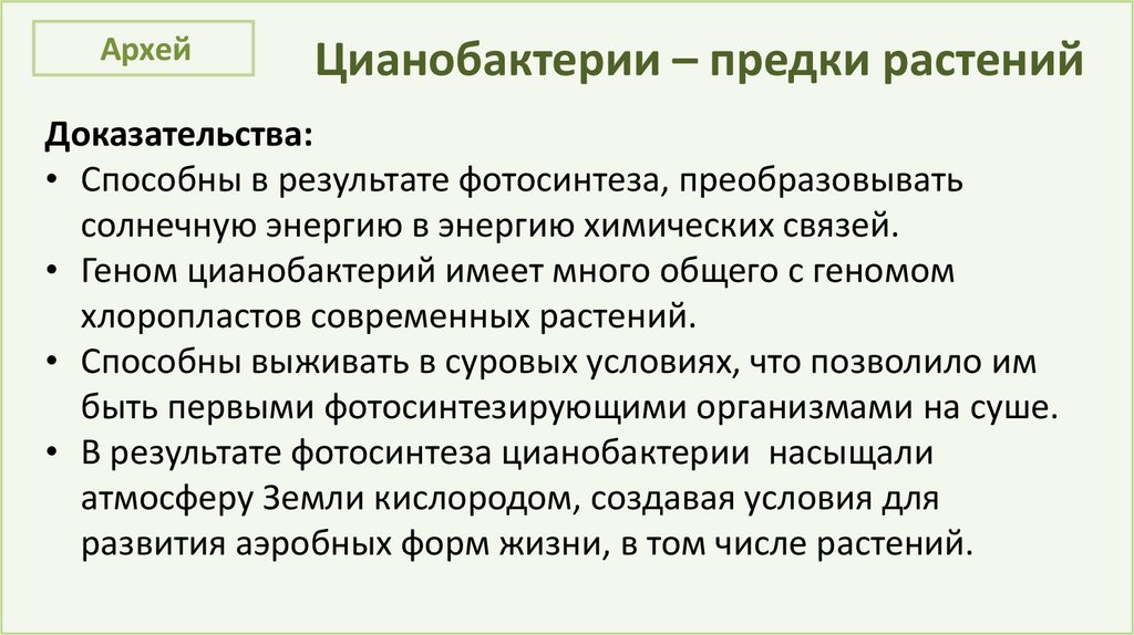 АрхейЦианобактерии – предки растений