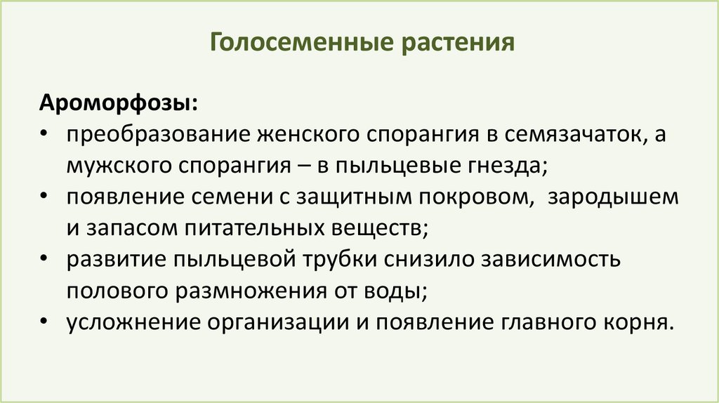 Голосеменные растенияАроморфозы: