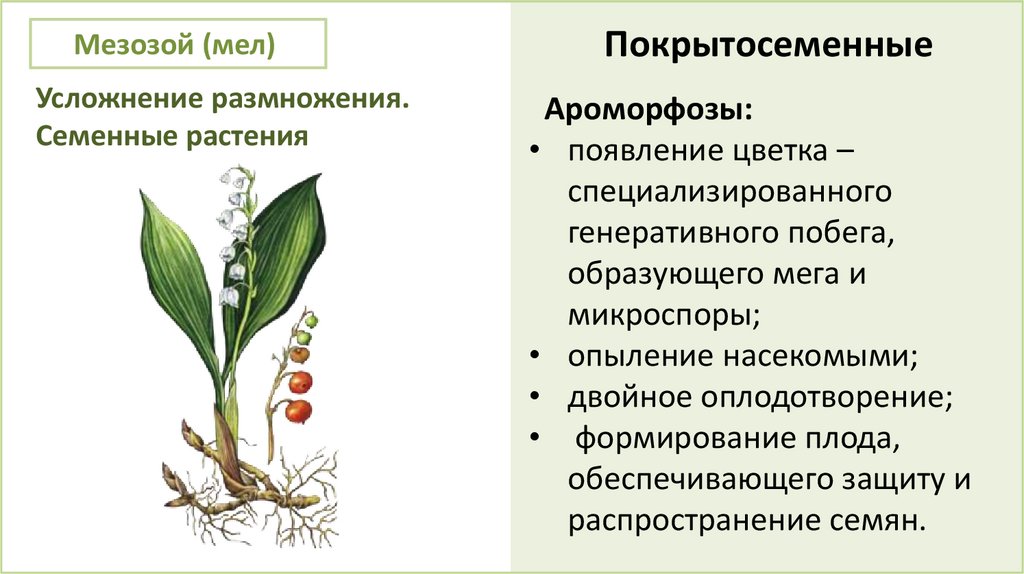 Мезозой (мел)Усложнение размножения.