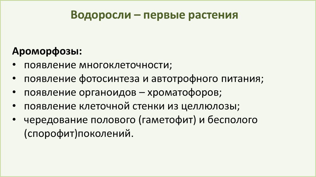 Водоросли – первые растенияАроморфозы: