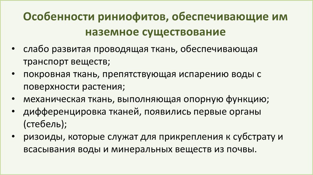 Особенности риниофитов, обеспечивающие имназемное существование