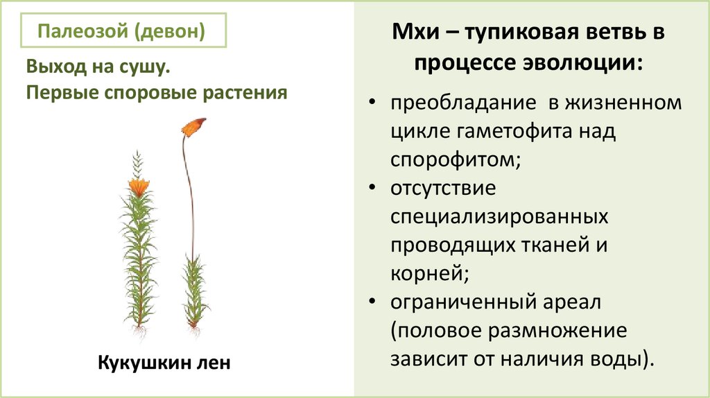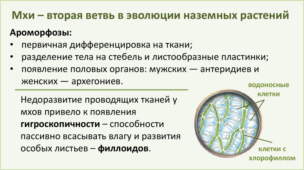 Мхи – вторая ветвь в эволюции наземных растенийАроморфозы: