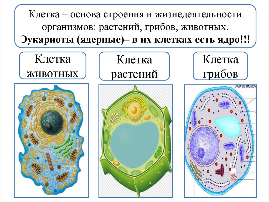 Клетка – основа строения и жизнедеятельностиорганизмов: растений, грибов, животных.