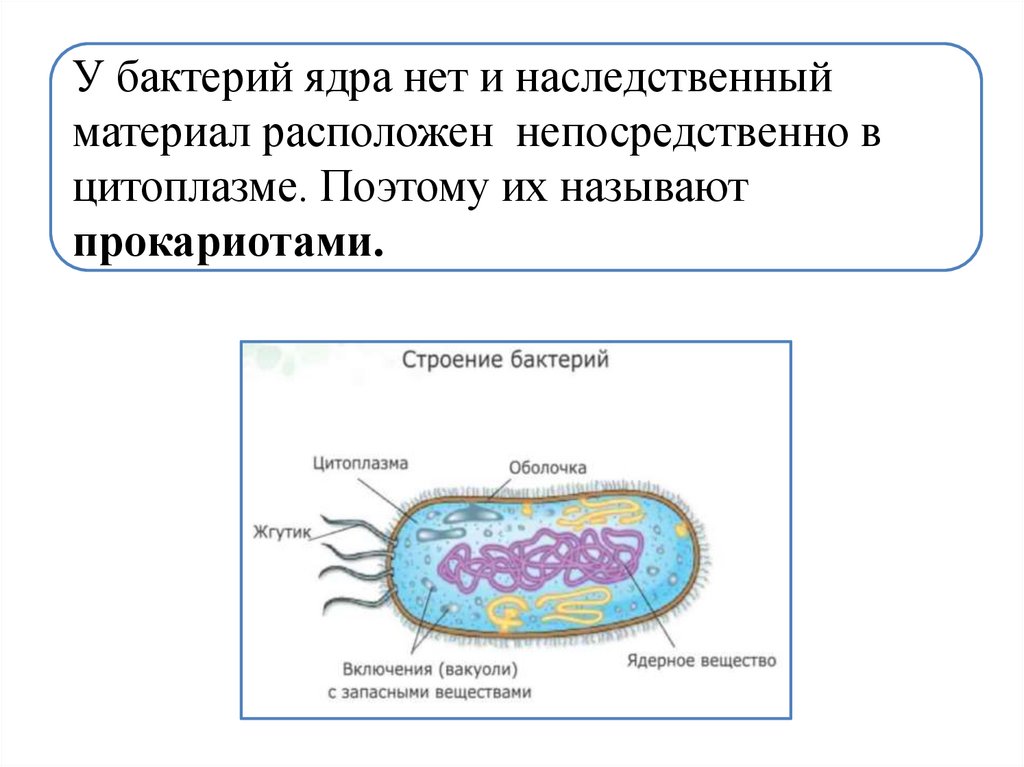 У бактерий ядра нет и наследственныйматериал расположен непосредственно в