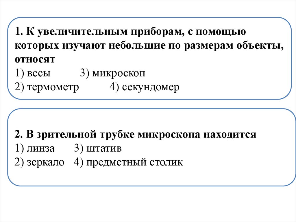 1. К увеличительным приборам, с помощьюкоторых изучают небольшие по размерам объекты,
