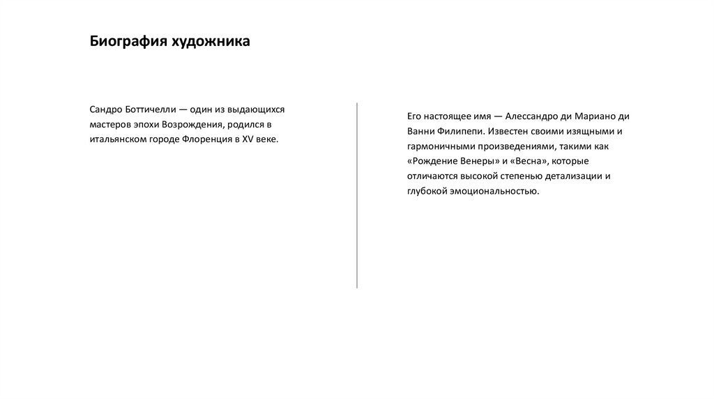 произведения, такие как «Рождение Венеры» и «Весна». Мы также