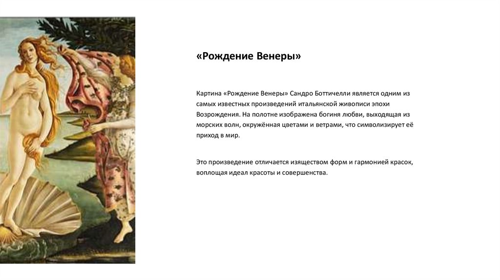 эпохи Возрождения, среди которых выделяются «Рождение Венеры» и