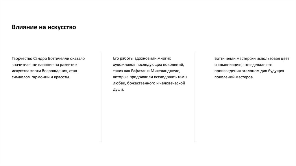 Влияние на искусствоТворчество Сандро Боттичелли оказало