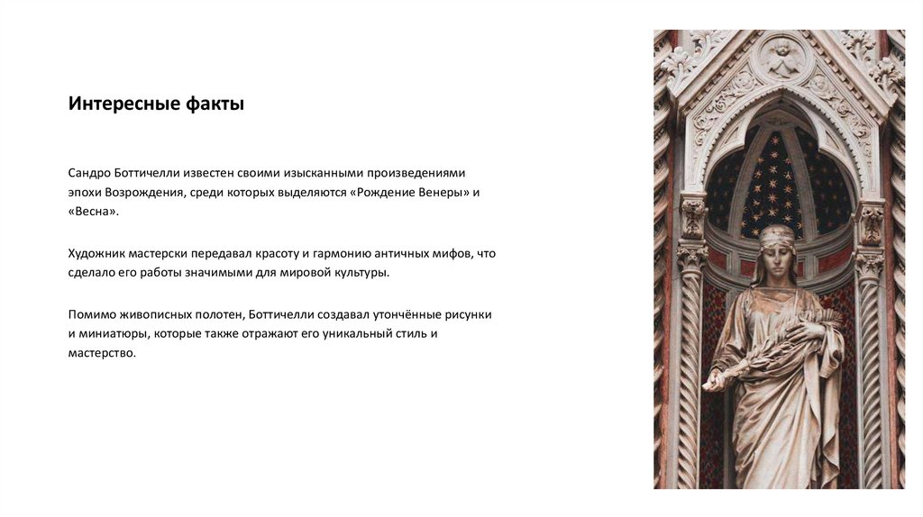 Интересные фактыСандро Боттичелли известен своими изысканными произведениями