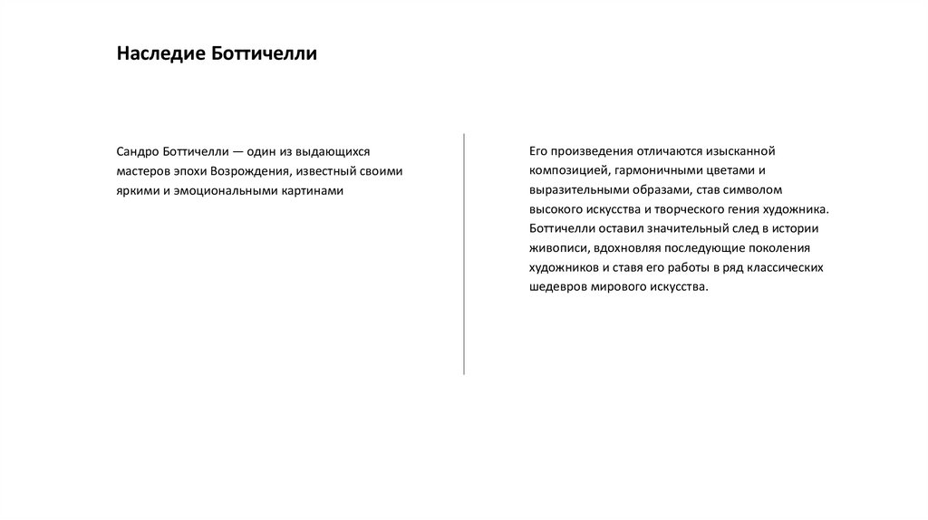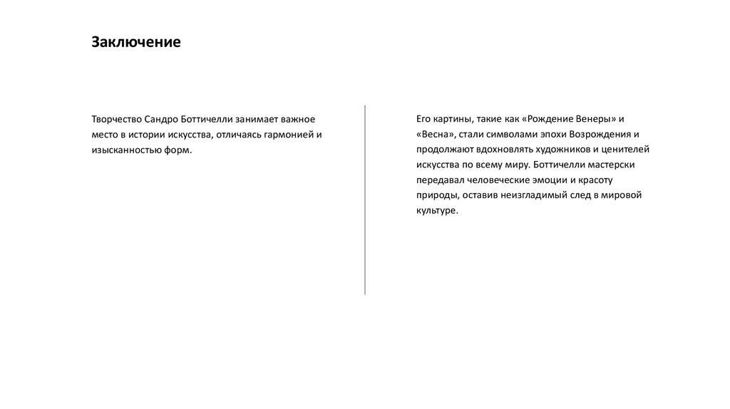 ЗаключениеТворчество Сандро Боттичелли занимает важное